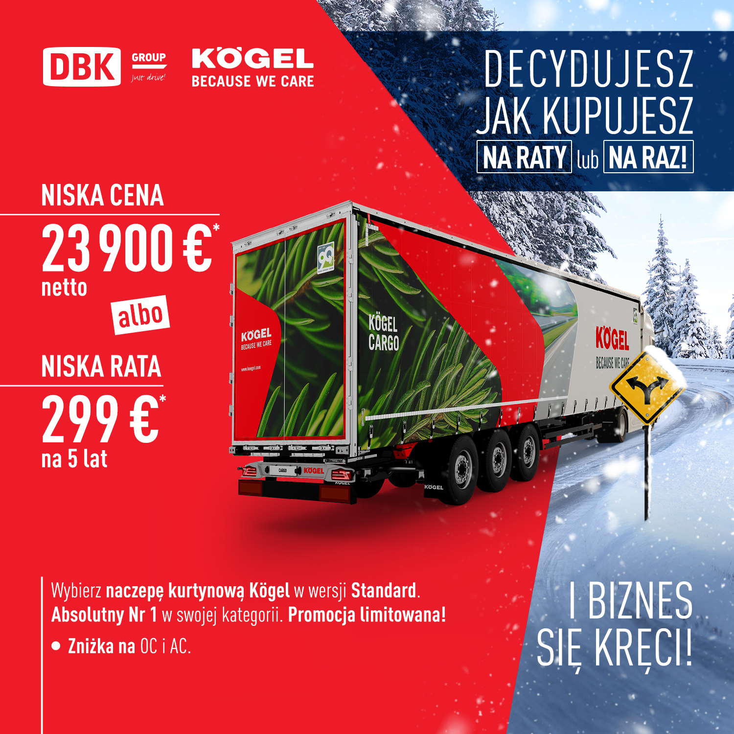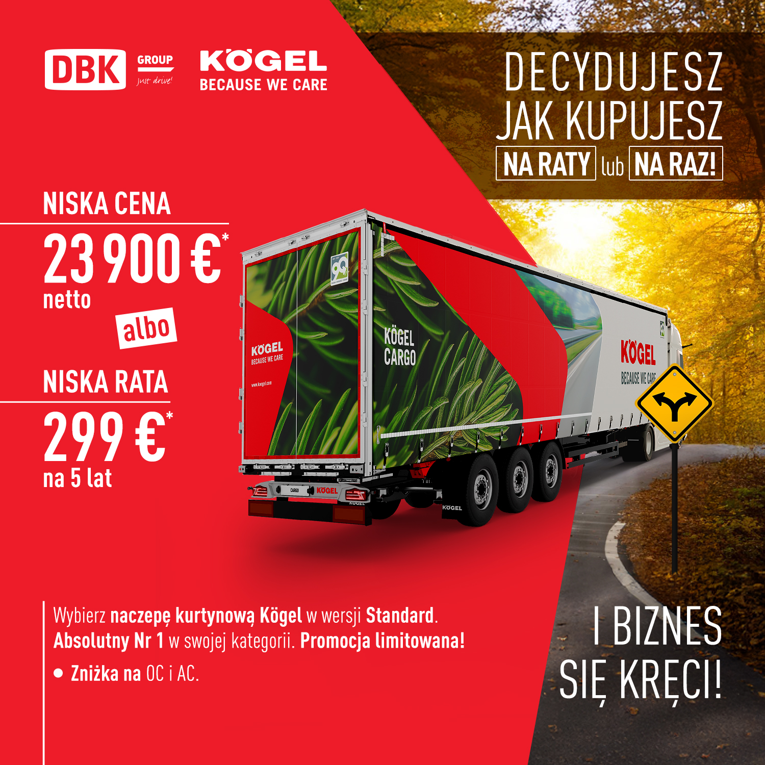 Grupa DBK jest wyłącznym importerem naczep i przyczep niemieckiej marki Kögel. W ofercie znajduje się pełny wybór pojazdów tego producenta, począwszy od naczep kurtynowych, przez coilmuldy, naczepy podkontenerowe, furgony, chłodnie, aż po przyczepy.