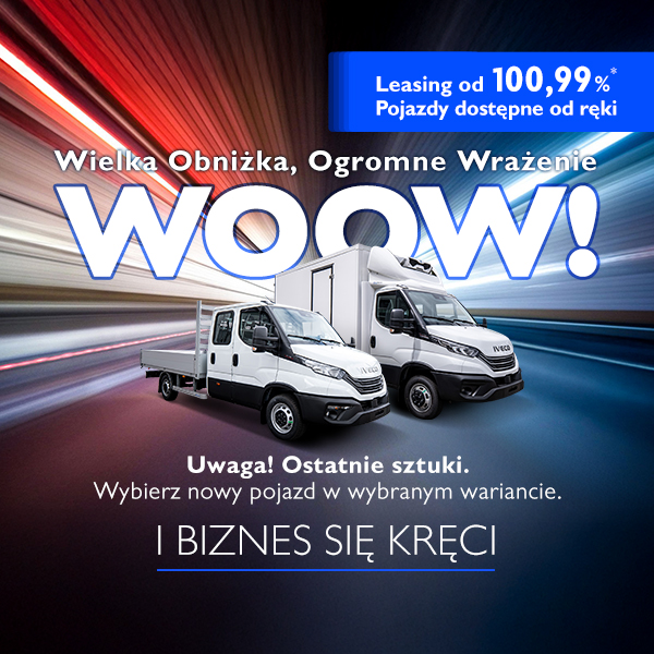IVECO Daily z gwarantowanym odkupem i niską ratą – nowa oferta Grupy DBK Grupa DBK wprowadza na rynek nową, atrakcyjną ofertę finansowania, której kluczowym elementem jest gwarantowany odkup pojazdu po zakończeniu okresu użytkowania. Produkt skierowany jest do przedsiębiorców poszukujących optymalizacji kosztów floty. Dzięki wysokiej wartości rezydualnej samochodów marki IVECO możliwe jest ustalenie wyjątkowo niskiej raty leasingowej. Nowa propozycja to w… Czytaj więcej