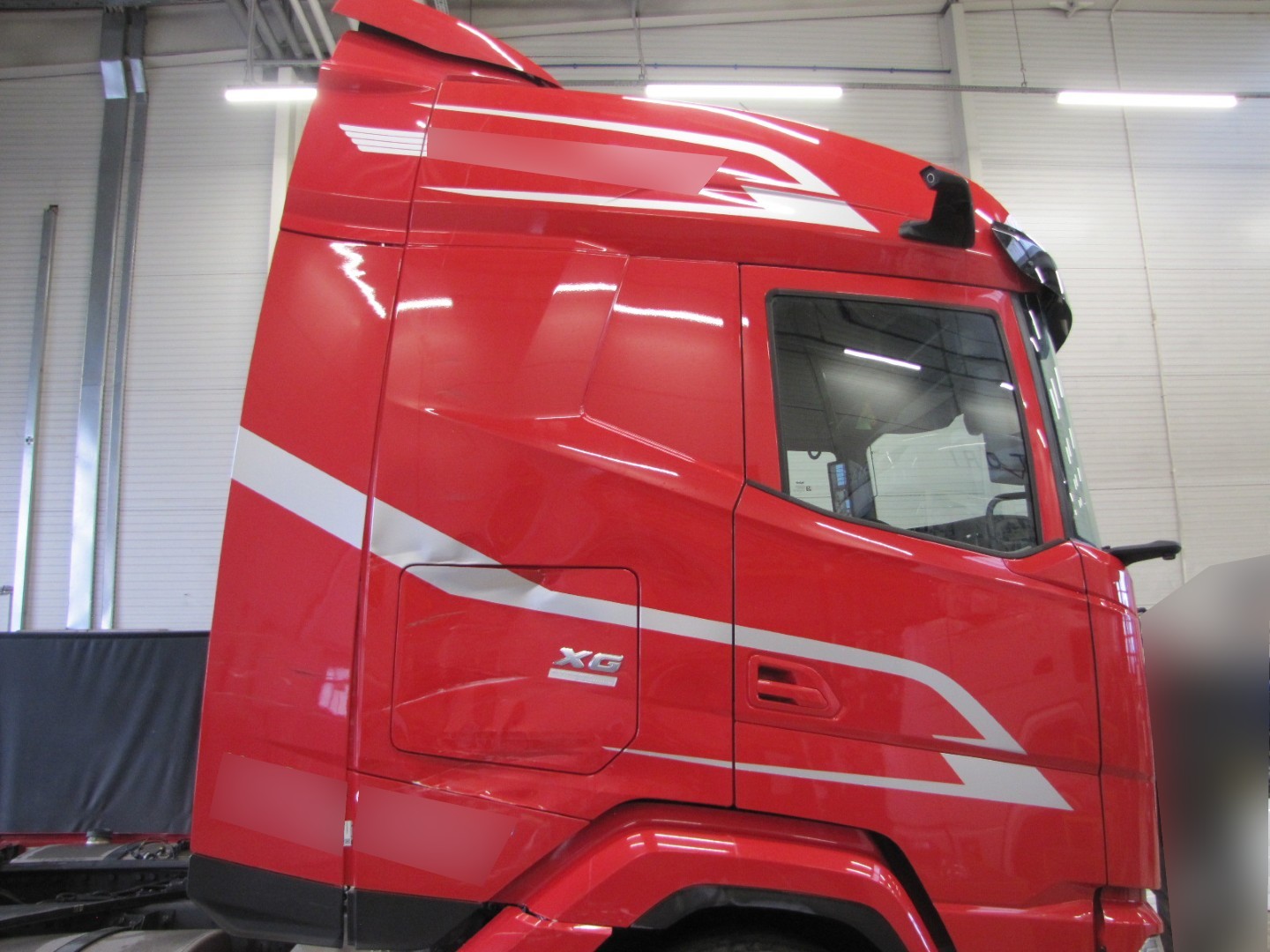 Do naszego serwisu w Szczecinie trafił ciągnik siodłowy DAF XG 480 z uszkodzeniami prawej strony kabiny, które powstały w wyniku zdarzenia drogowego. Naprawa została w całości sfinansowana z polisy OC sprawcy, a nasz zespół przejął pełną obsługę formalności z ubezpieczycielem Warta.