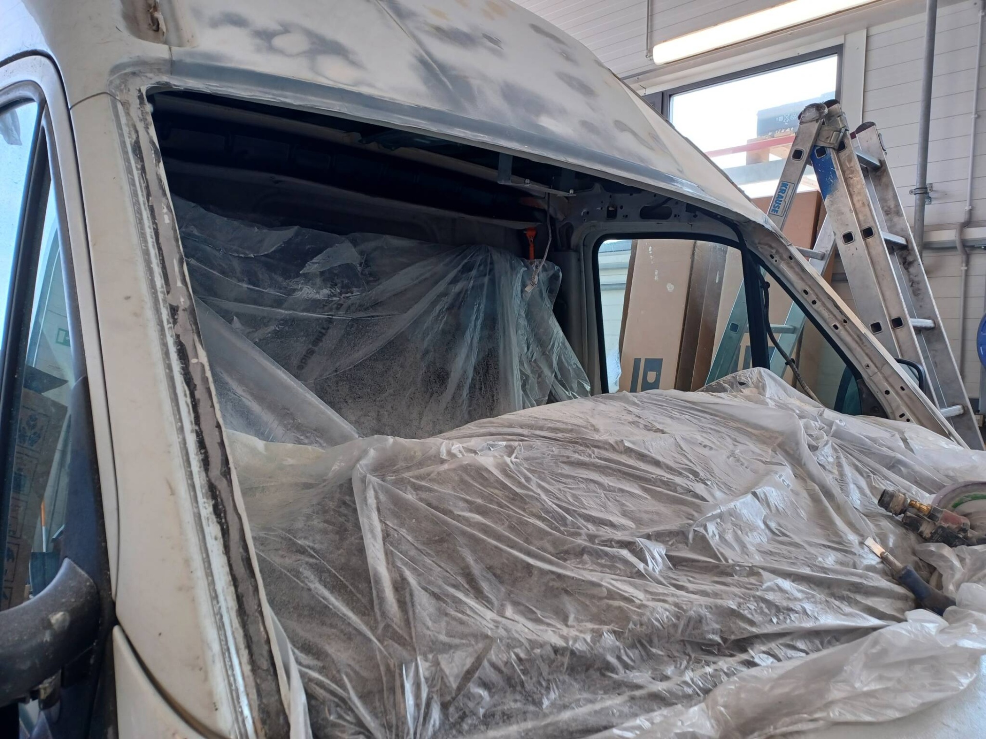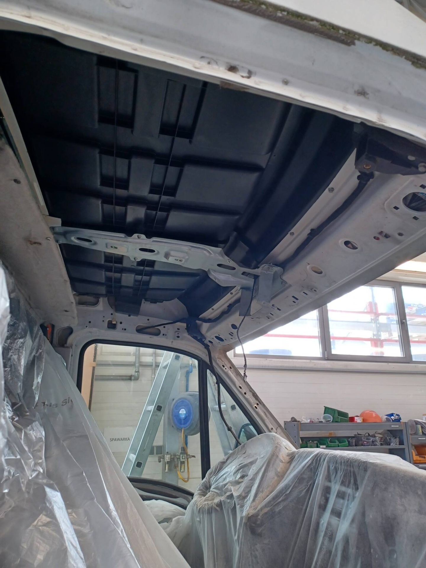- Precyzyjna naprawa blacharska wgnieceń na dachu kabiny.