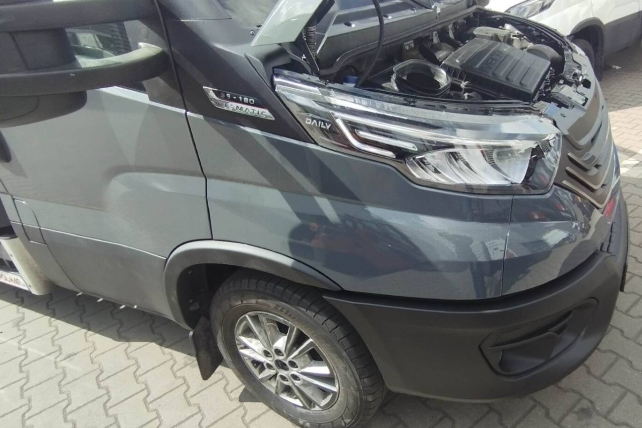 Do naszego serwisu w Niepruszewie trafił pojazd marki IVECO Daily z rozległymi uszkodzeniami przedniej części, które powstały w wyniku zdarzenia drogowego. Klient, korzystając z ubezpieczenia AC, zdecydował się na pełną obsługę likwidacji szkody, dzięki czemu nasz zespół mógł niezwłocznie przystąpić do działania, przejmując na siebie wszystkie formalności związane z ubezpieczycielem.