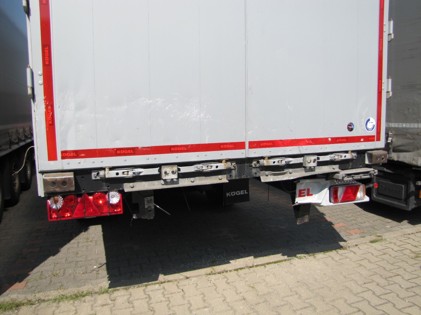 Do serwisu Grupy DBK w Szczecinie trafiła naczepa Koegel S24-1, która uległa poważnemu uszkodzeniu w wyniku kolizji drogowej. Pojazd osobowy wjechał w tył stojącego w korku zestawu, powodując rozległe zniszczenia tylnej części naczepy. Nasz zespół podjął się kompleksowej naprawy blacharsko-lakierniczej, mającej na celu przywrócenie pojazdu do pełnej sprawności i estetyki.