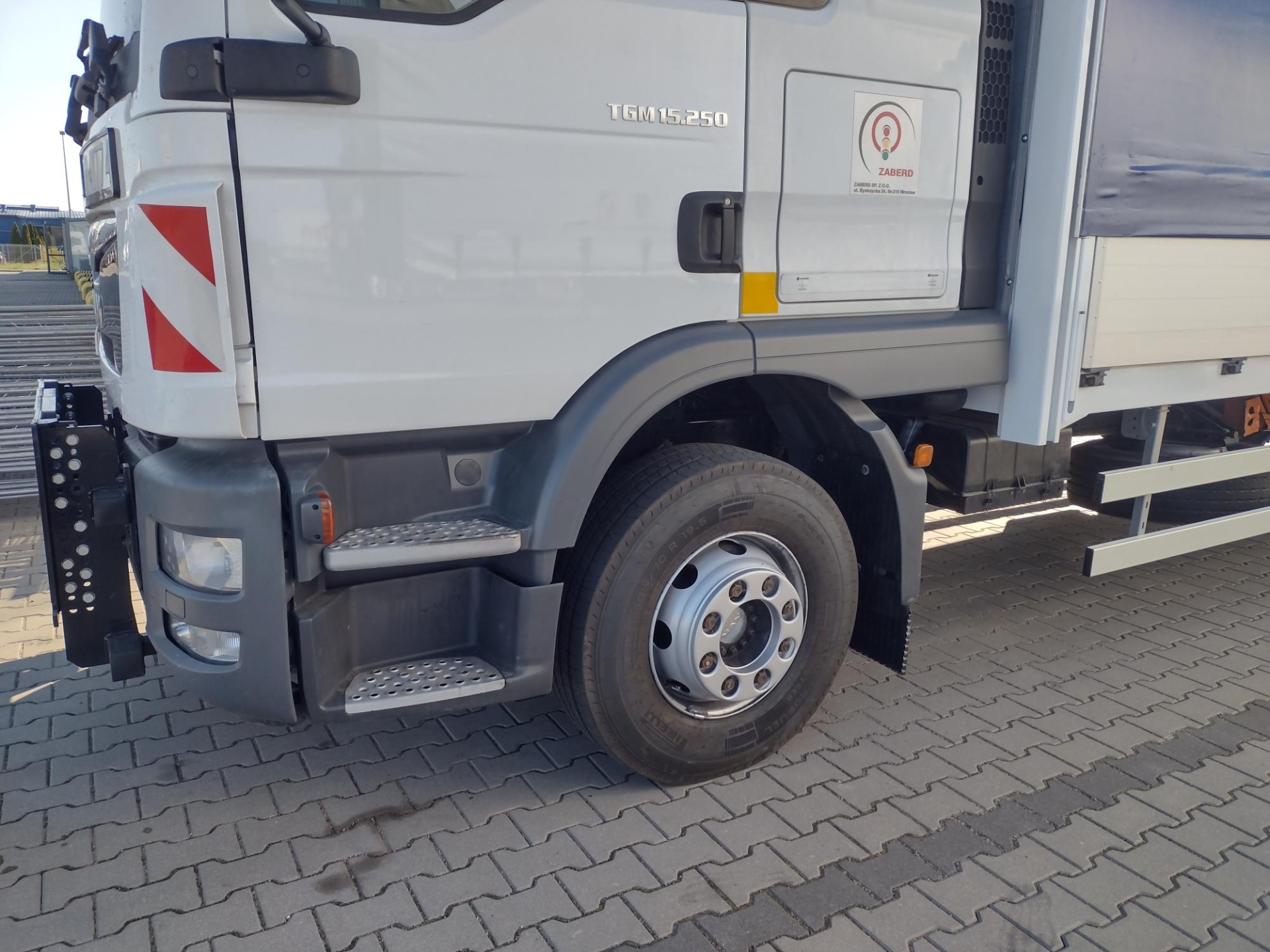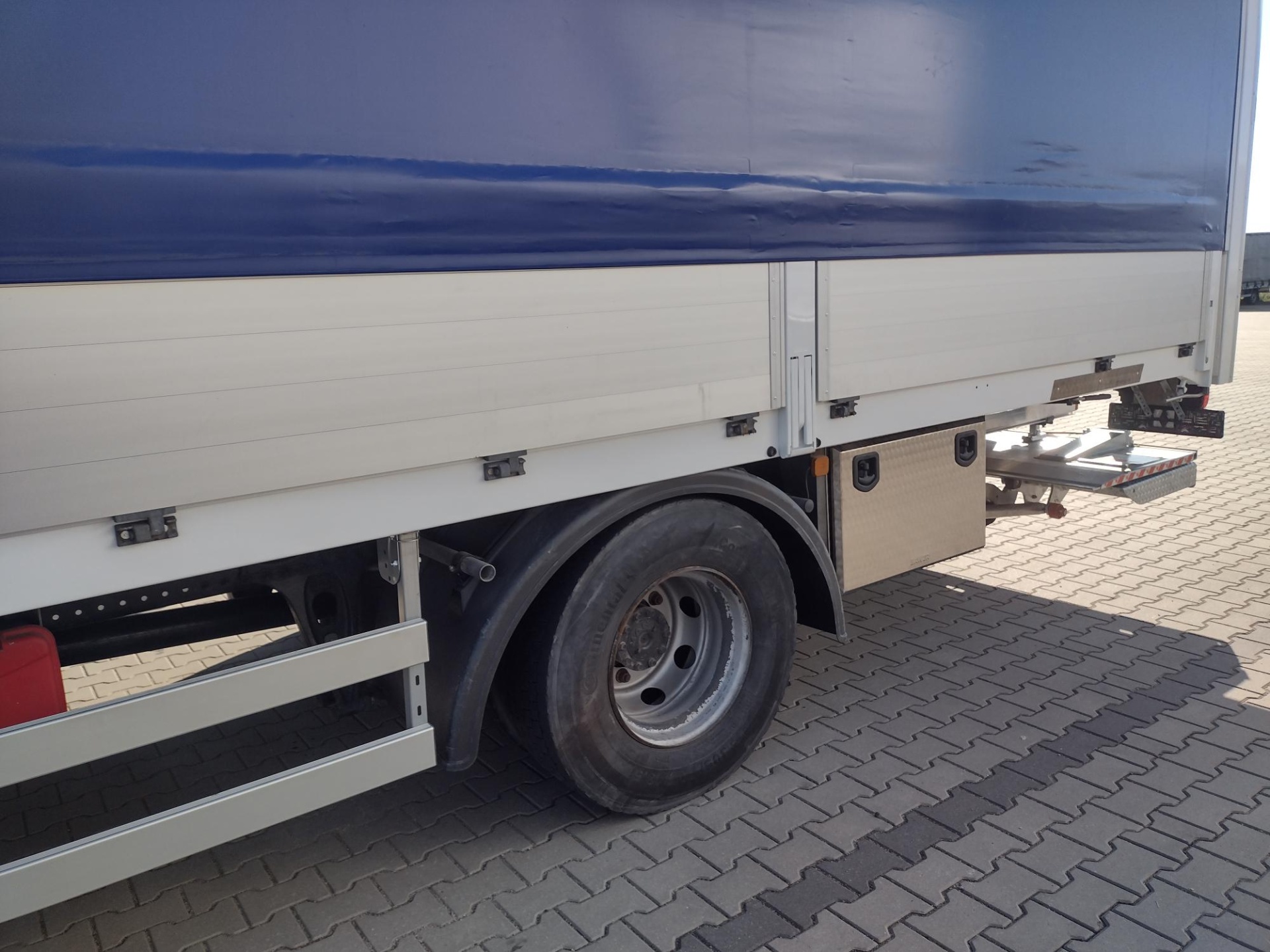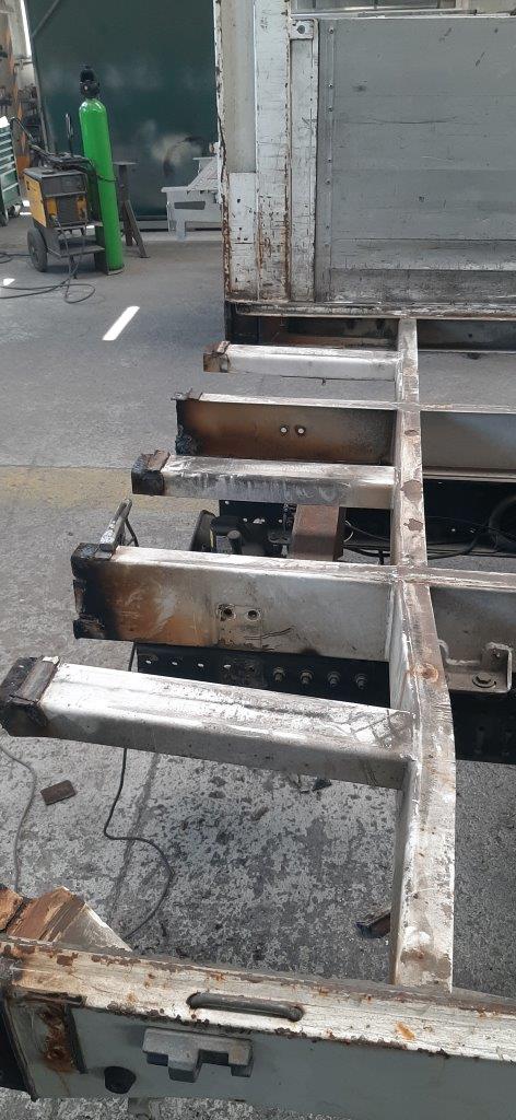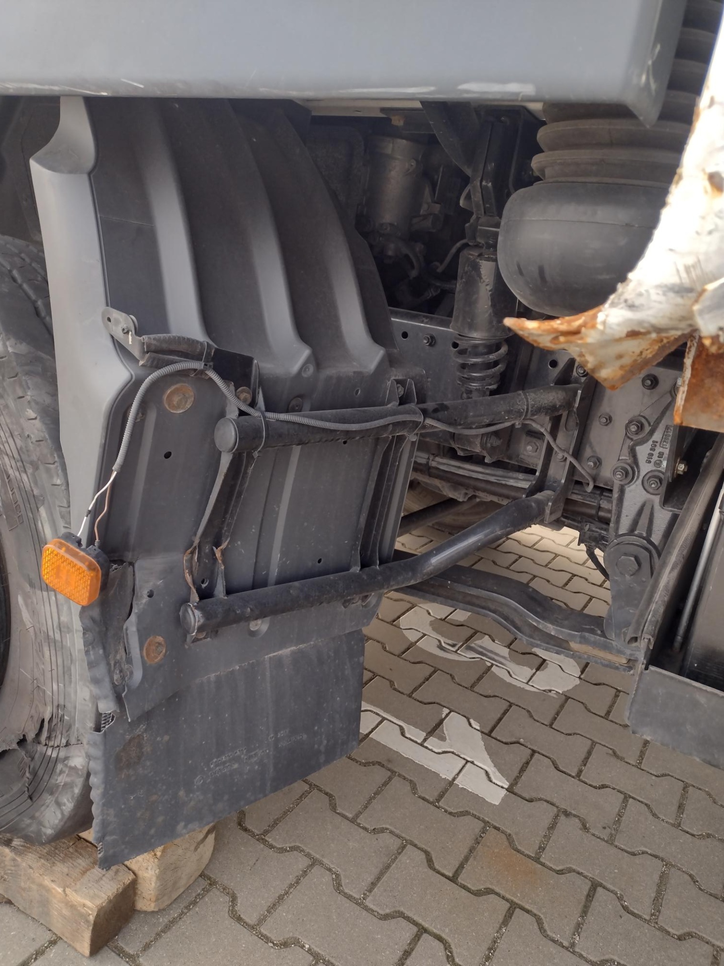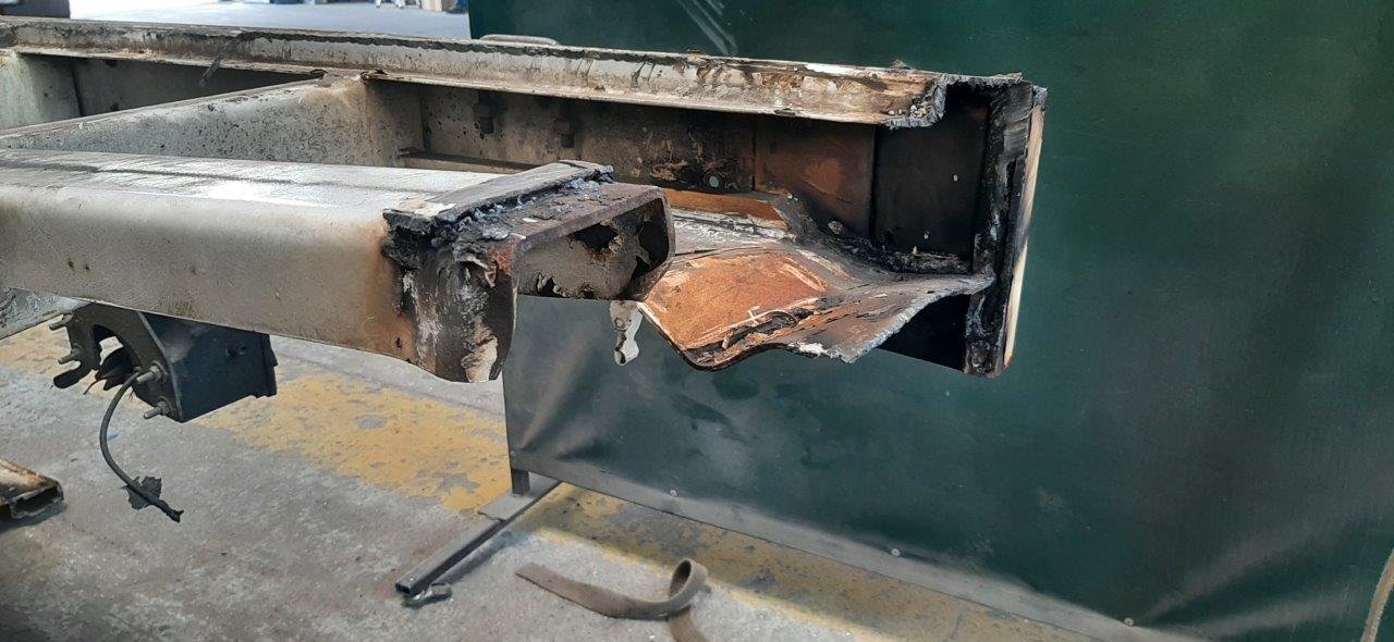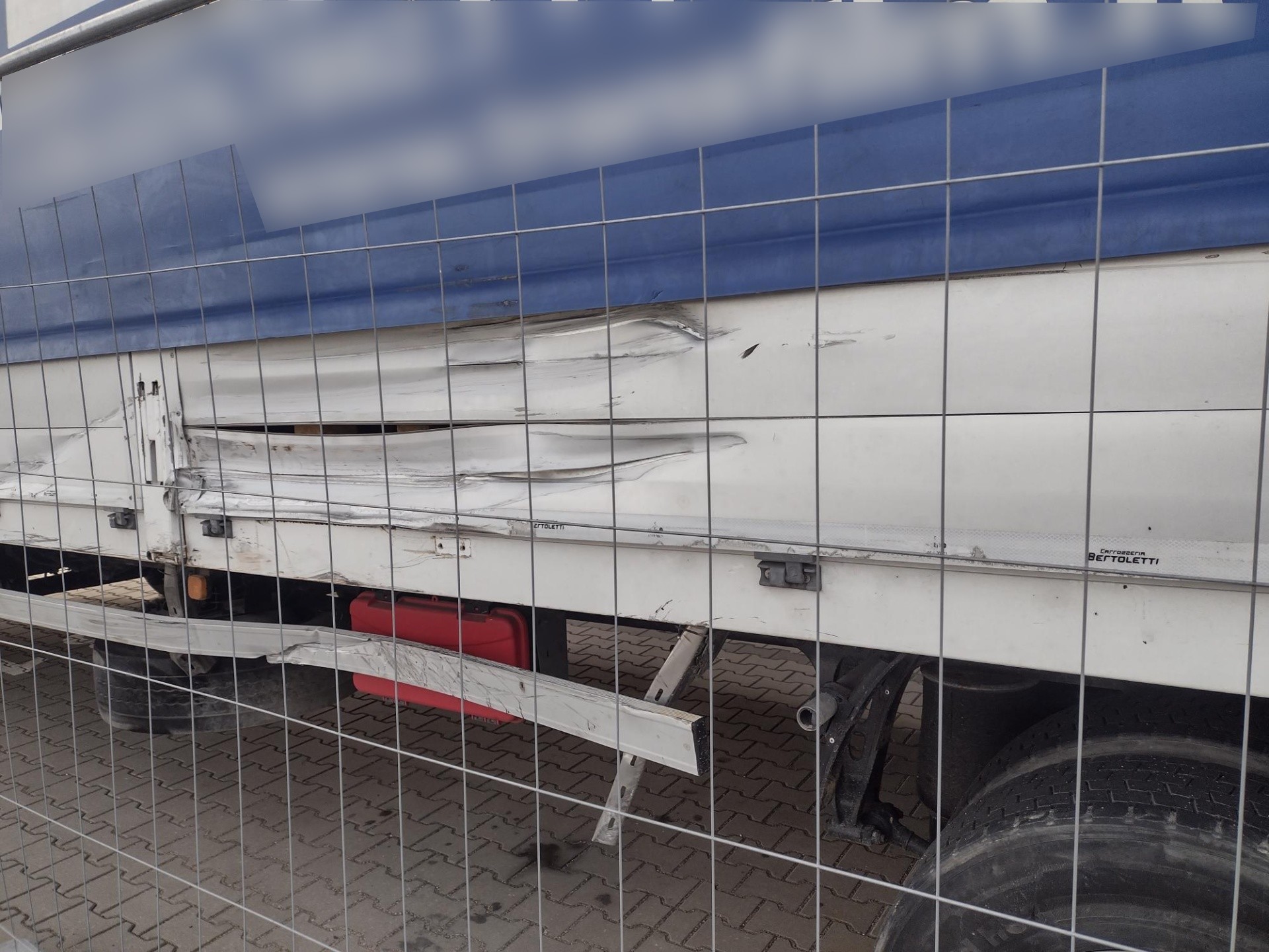 Zakres uszkodzeń był znaczny i objął nie tylko poszycie, ale również zabudowę, windę załadowczą, osłony przeciwnajazdowe, kłonice oraz plandekę. Co kluczowe, w wyniku kolizji zabudowa utraciła swoją geometrię, co wymusiło konieczność wymiany wielu elementów konstrukcyjnych, nawet tych pozornie odległych od głównego punktu uderzenia.
