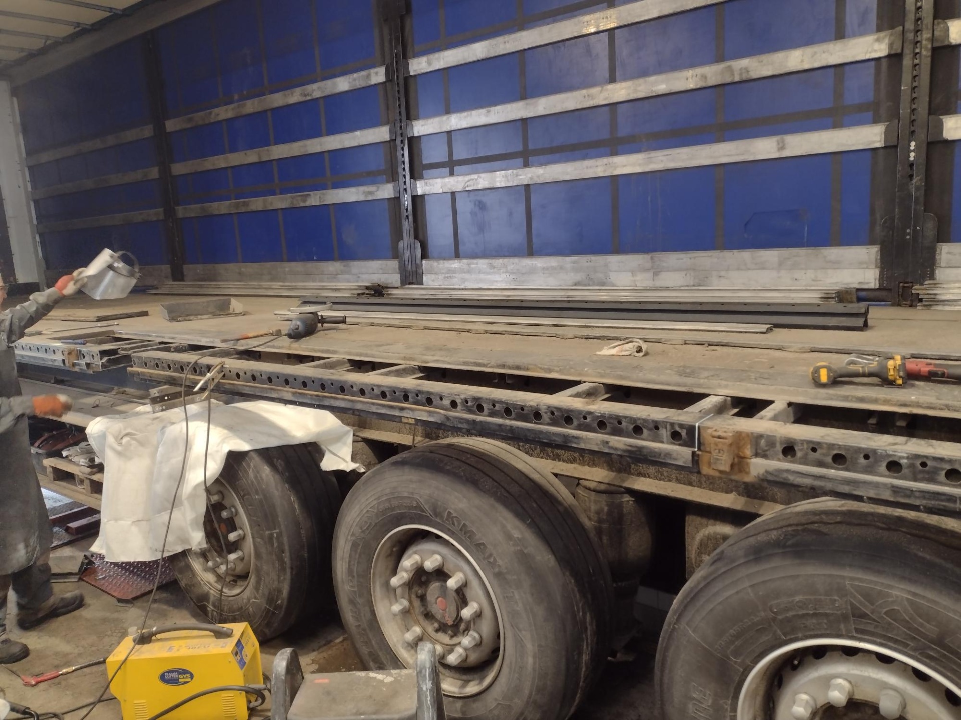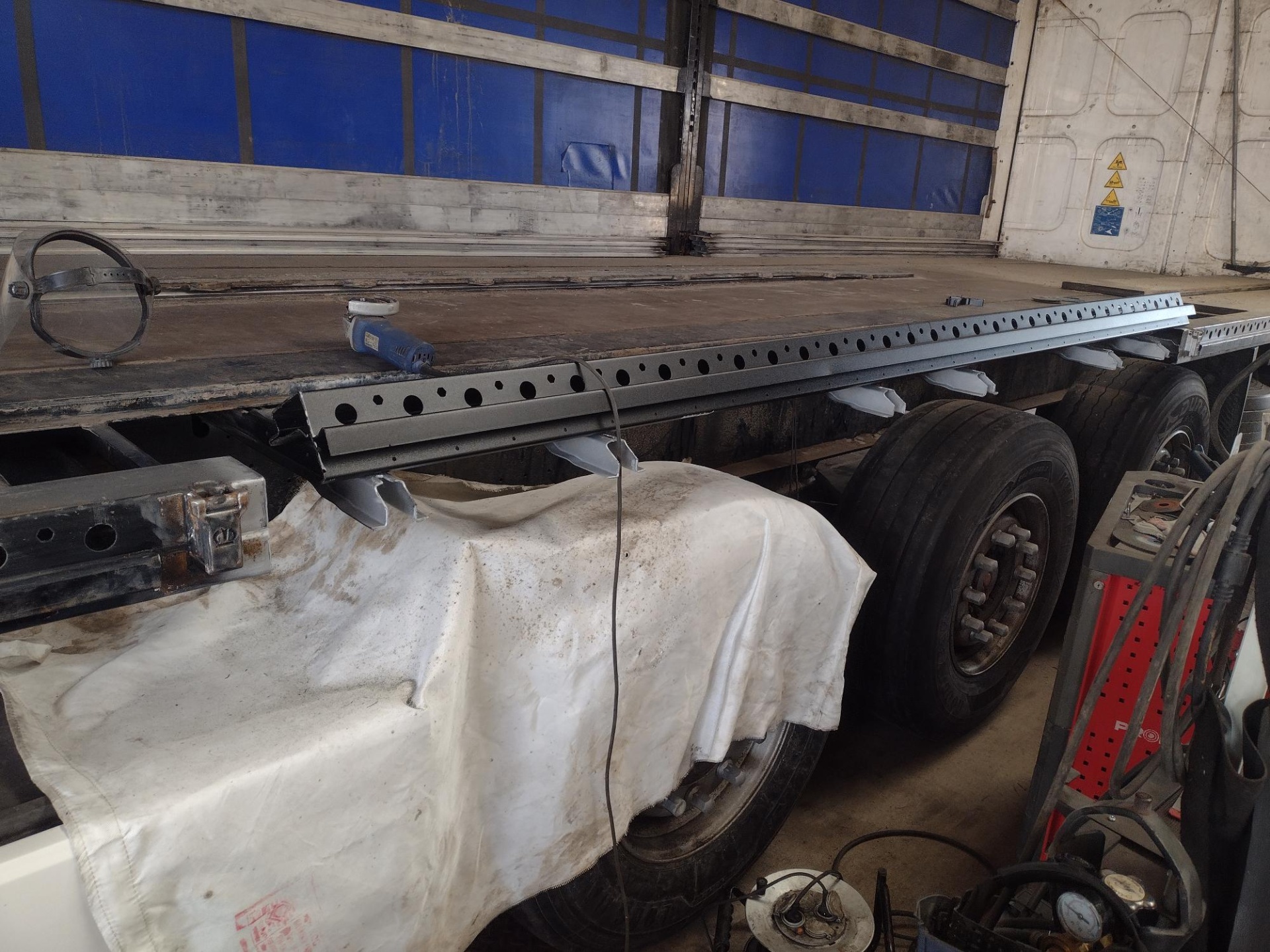- Wymiana uszkodzonych elementów, w tym plandeki, obrzeża dolnego i pokryw paleciary.