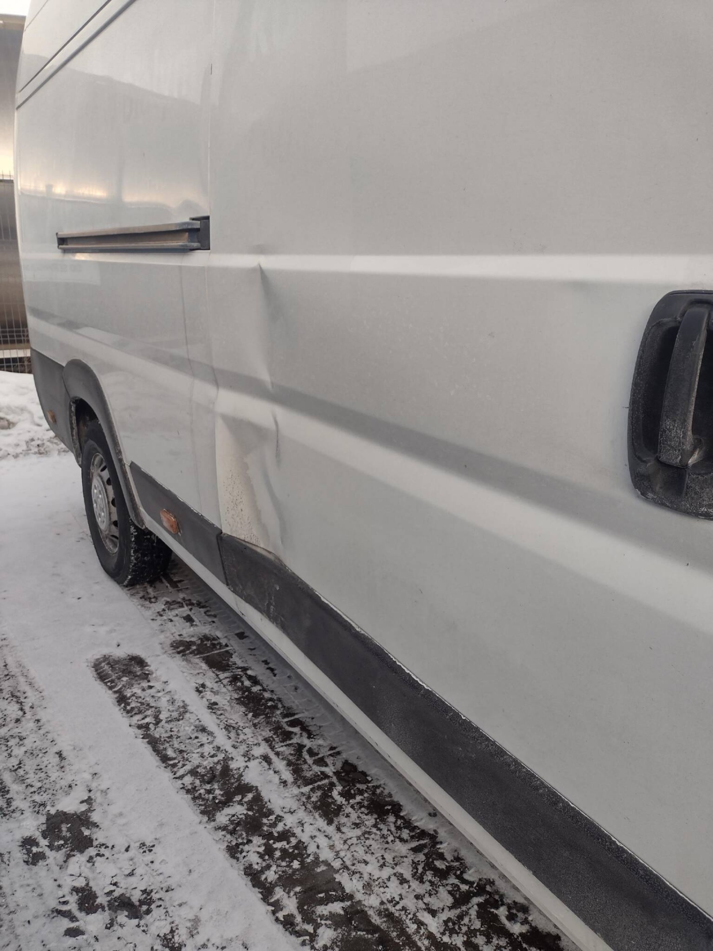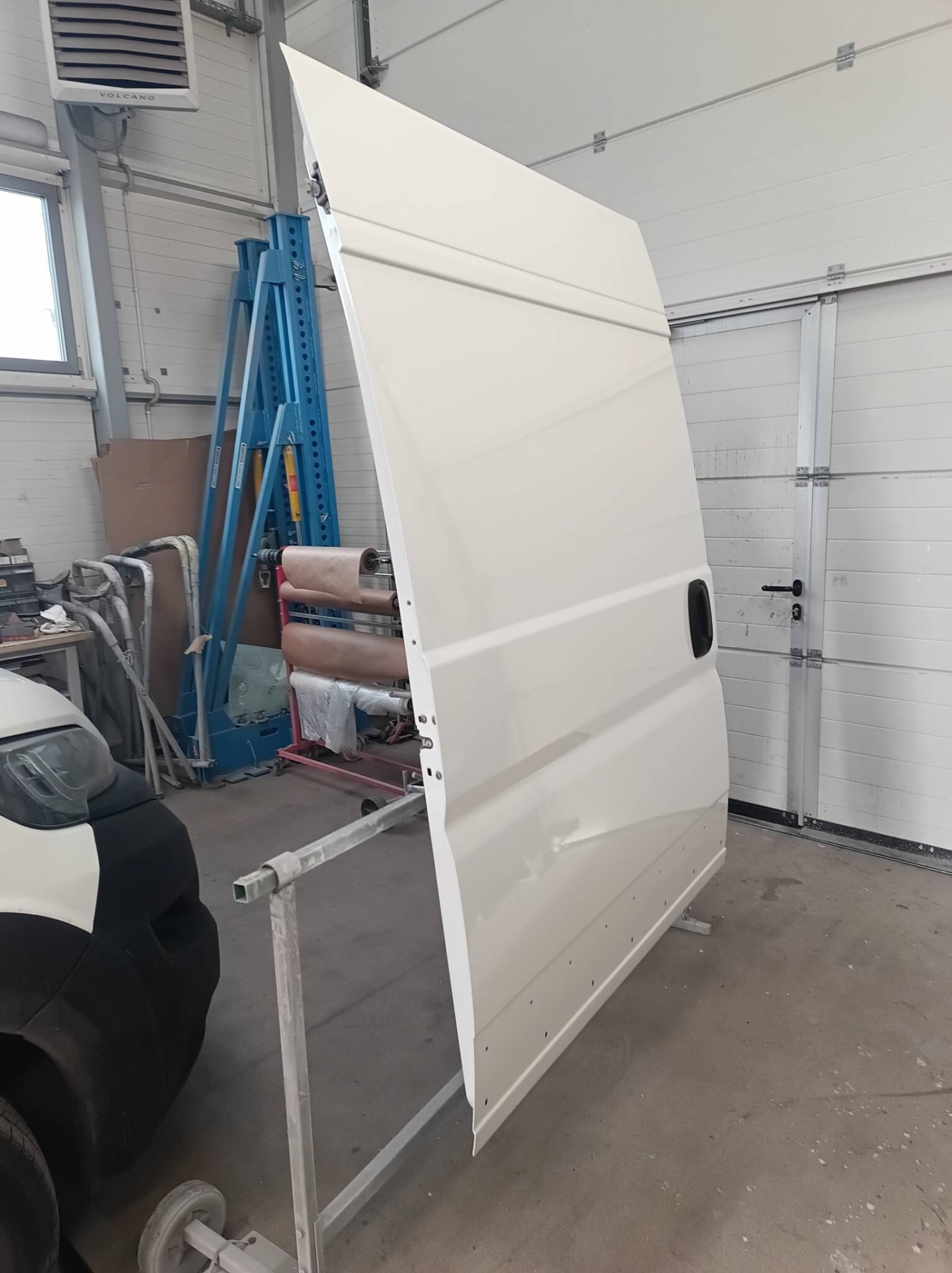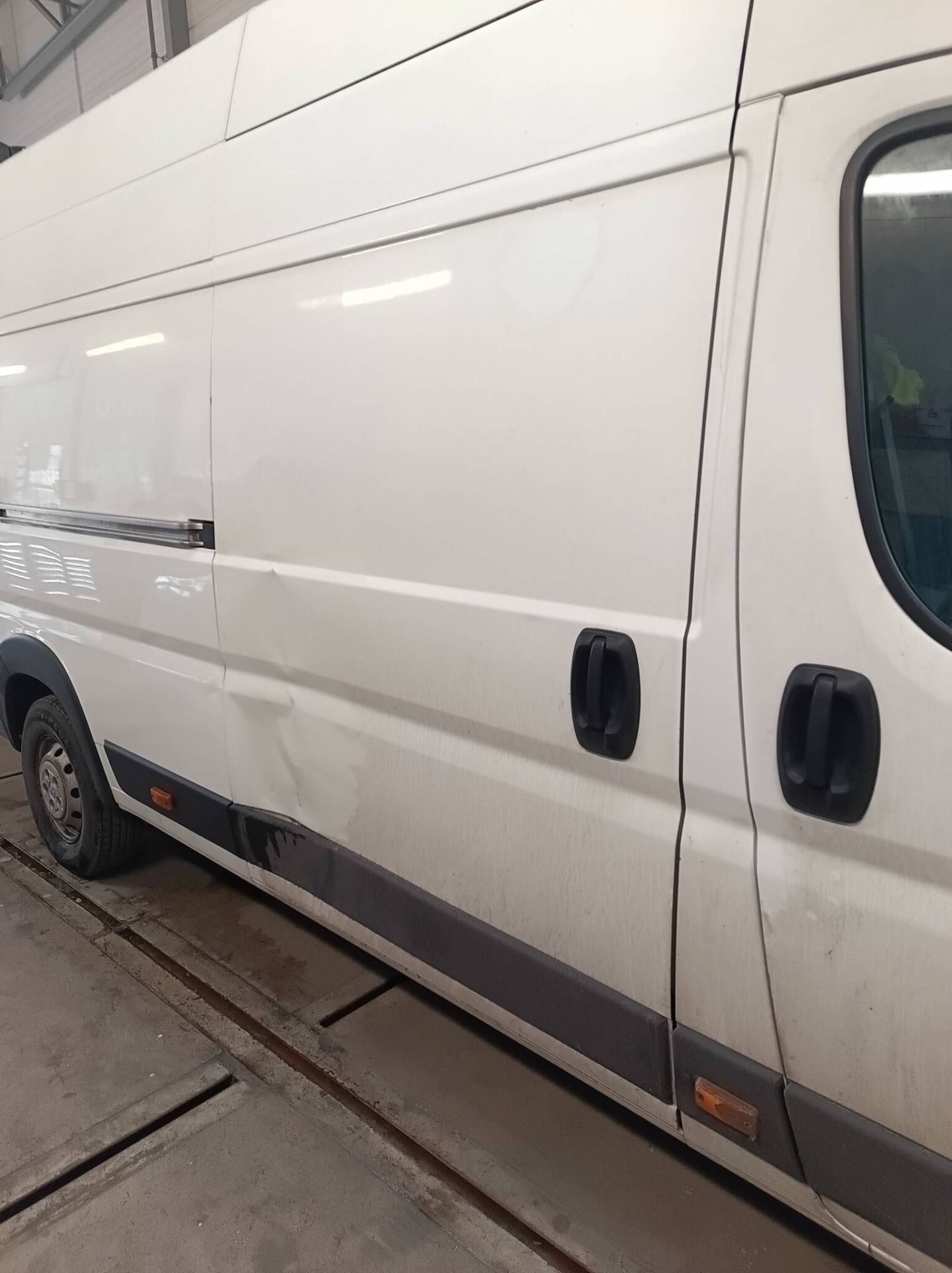 Peugeot Boxer trafił do serwisu Grupy DBK w Suwałkach z uszkodzeniem powstałym w wyniku typowej kolizji parkingowej. Sprawca zdarzenia, cofając, uderzył w bok pojazdu dostawczego, co skutkowało nieodwracalnym wgnieceniem drzwi przesuwnych.