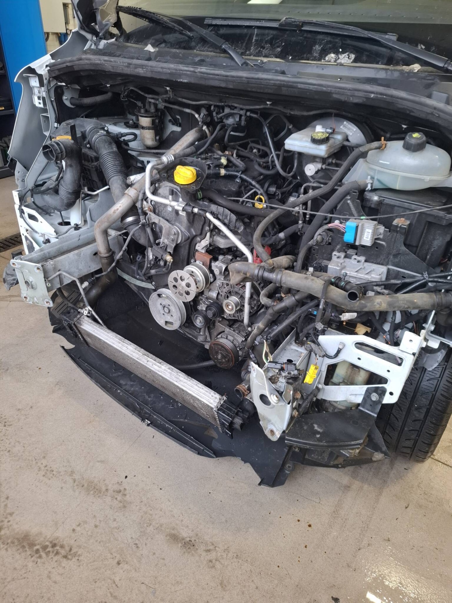 Do serwisu Grupy DBK w Krakowie trafił pojazd marki Renault, wymagający kompleksowej naprawy blacharsko-lakierniczej po zdarzeniu drogowym. Charakter uszkodzeń, określony jako powypadkowy, wskazywał na konieczność zaawansowanych prac, w tym prostowania ramy.