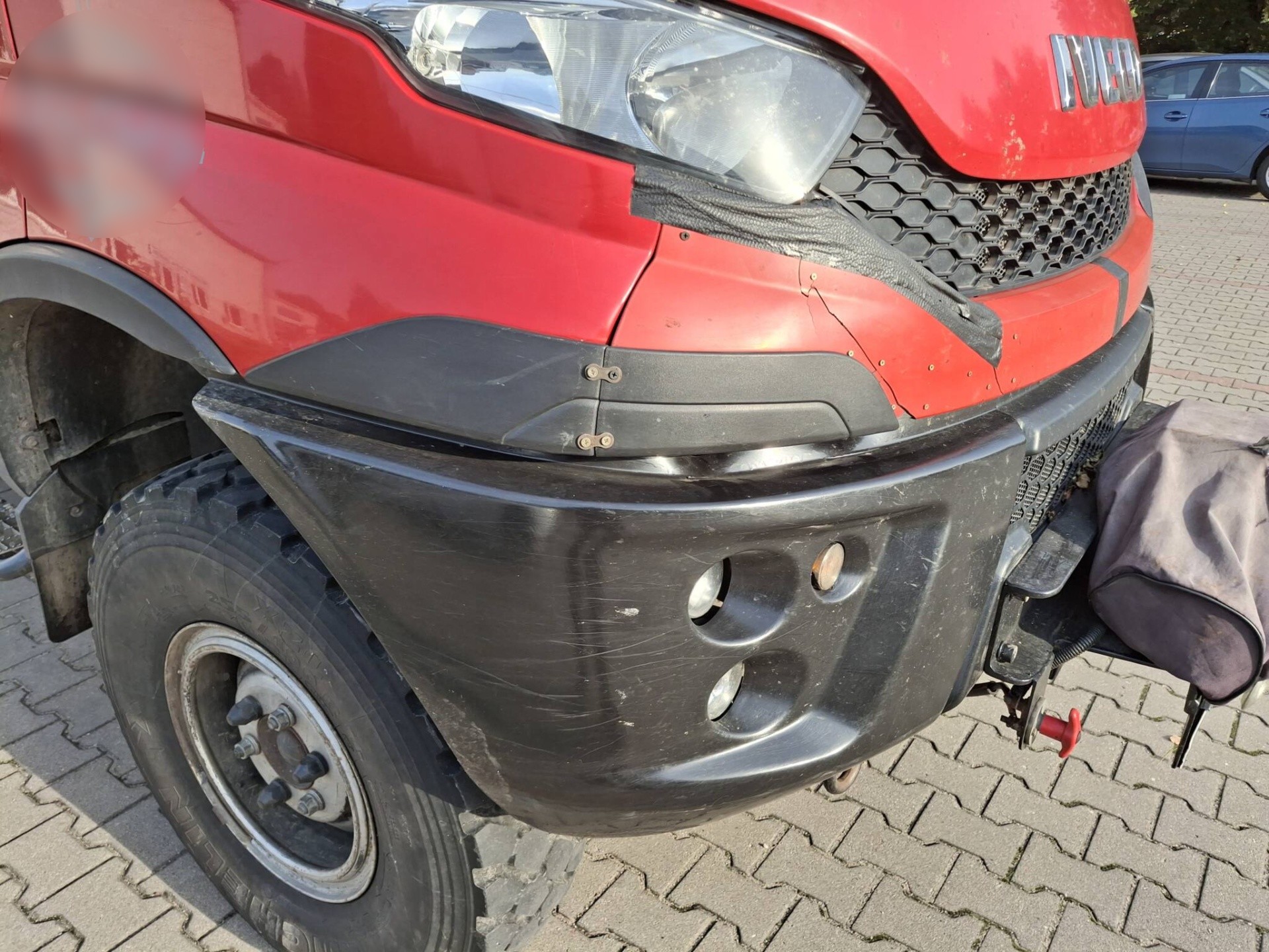 Specjalistyczny pojazd terenowy na podwoziu Iveco Daily trafił do serwisu DBK Olsztyn po zderzeniu ze zwierzęciem. Uszkodzenia koncentrowały się na przedniej części pojazdu, co wymagało kompleksowej naprawy blacharsko-lakierniczej oraz fachowej interwencji.