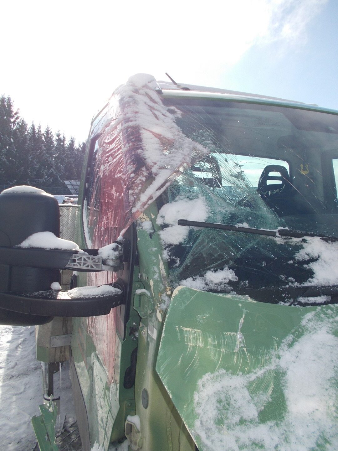 Uszkodzenia objęły prawą przednią część pojazdu. Zniszczeniu uległa maska, uszkodzona została szyba czołowa, a także doszło do naruszenia geometrii kabiny, co miało bezpośredni wpływ na bezpieczeństwo dalszej eksploatacji.