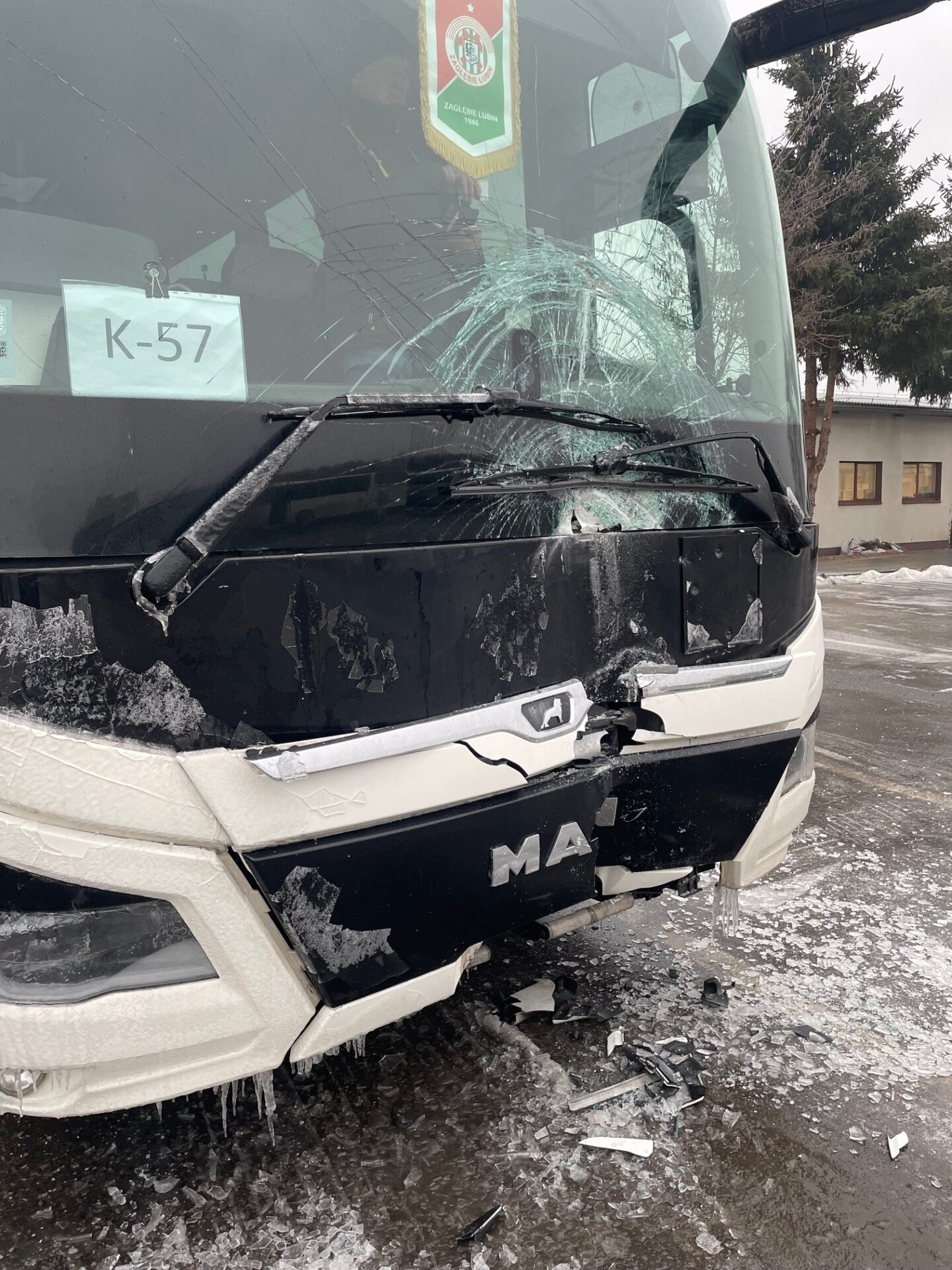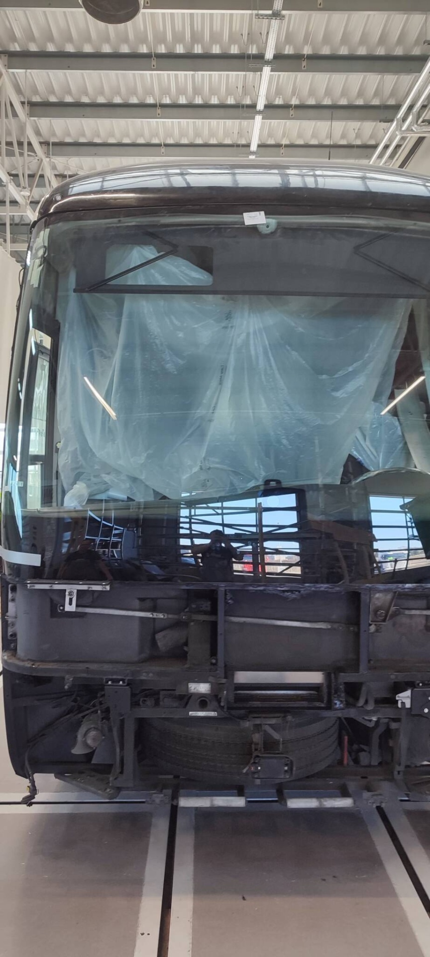 Do naszego serwisu w Legnicy trafił autobus MAN Lion’s Coach z uszkodzeniami przedniej części nadwozia. Do zdarzenia doszło na oblodzonym placu manewrowym, gdzie inny pojazd uderzył w przód naszego autobusu. Skala uszkodzeń wymagała kompleksowej interwencji blacharskiej, obejmującej zarówno elementy poszycia, jak i konstrukcję nośną pojazdu.