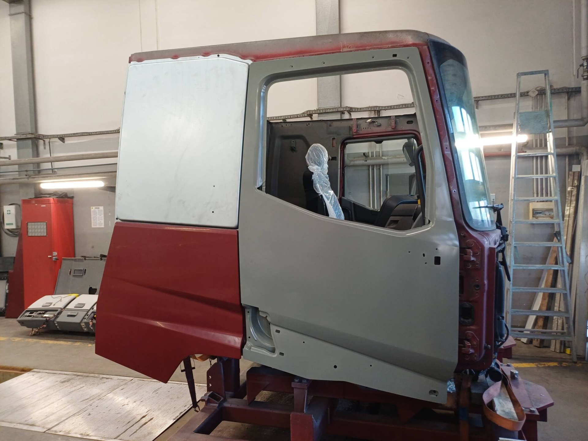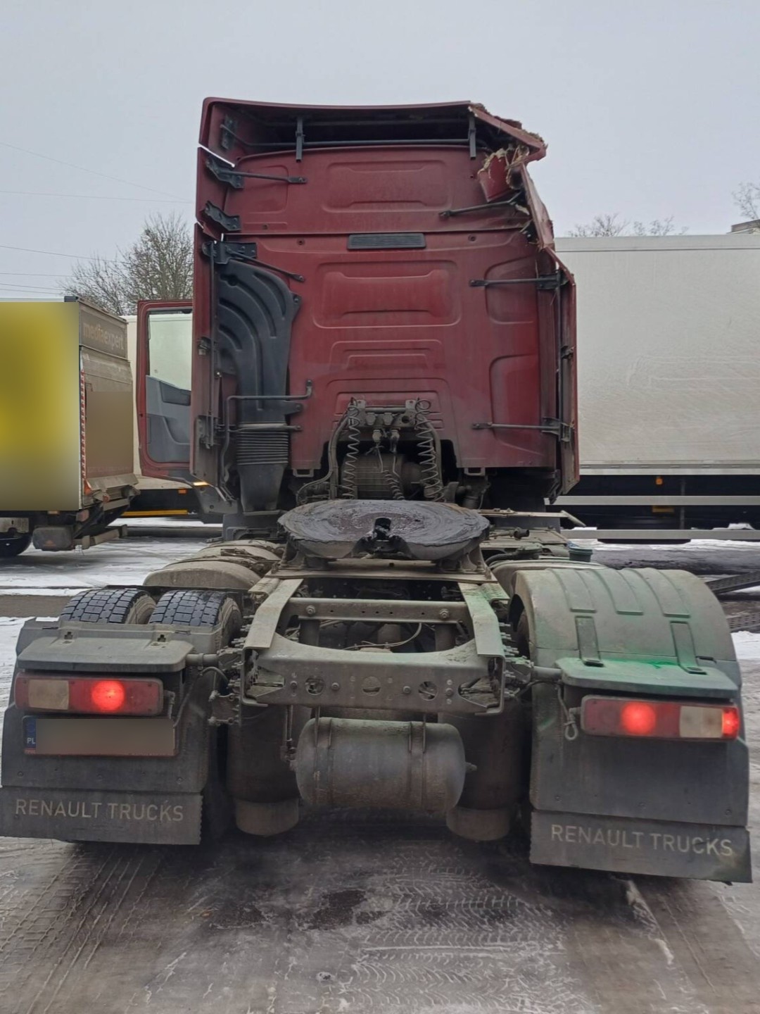 Do naszego serwisu w Poznaniu trafił ciągnik siodłowy marki Renault, który uległ poważnemu wypadkowi – przewróceniu na prawy bok. Skutkiem zdarzenia były rozległe uszkodzenia kabiny oraz, co najpoważniejsze, naruszenie geometrii ramy pojazdu. Naszym priorytetem było przywrócenie pełnej sprawności technicznej i bezpieczeństwa konstrukcji.